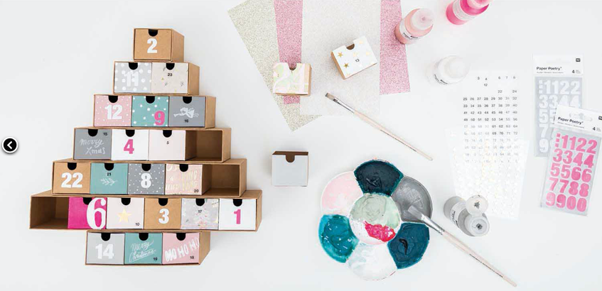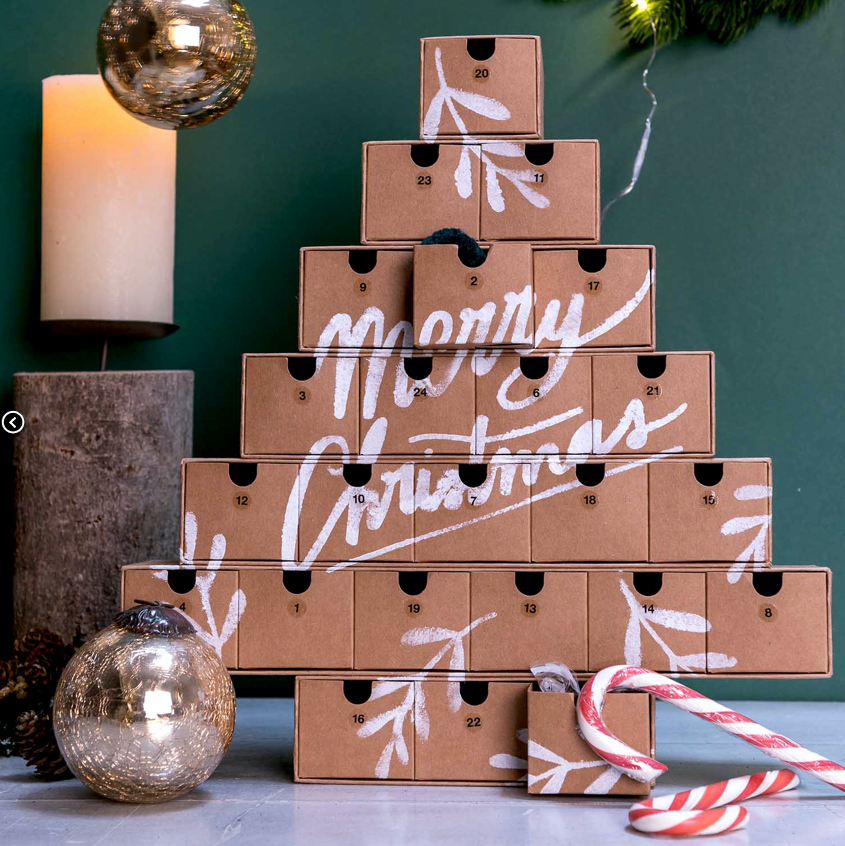 Un árbol compuesto de 24 cajitas perfecto para decorar, pintar como quieras y montar tu calendario de adviento.