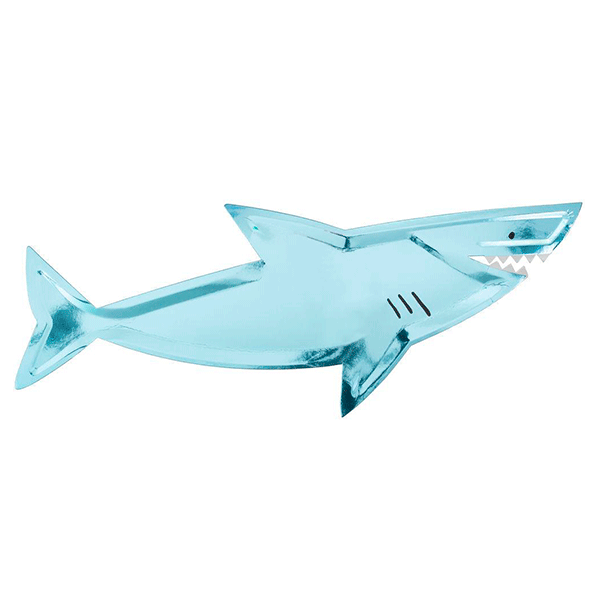 Bandejas con forma de tiburón con dientes muy grandes. Perfectas para bocadillos, aperitivos y darle un toque divertido a tu mesa de bajo del mar.