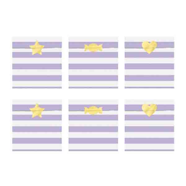 Bolsas papel lila rayas y pegatina / 6 uds.