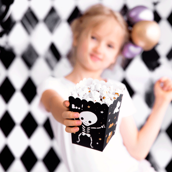 Dale un toque diferente a tu fiesta de Halloween con estas cajas de palomitas! Puedes rellenarlas de Palomitas o caramelos, son ideales para rellenarlas en mesas dulces y que cada invitado se lleve la suya a casa.
