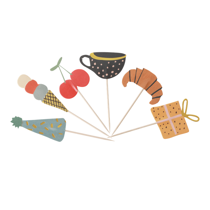 Dale un toque especial a tu pastel, cupcakes o decoración de cumpleaños con estos adorables toppers con diferentes motivos muy festivos.