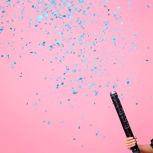 Es lo nuevo para esta temporada. ¿Es niño o niña? Con este cañón de confeti podrás anunciar de manera sorprendente la llegada del nuevo miembro de la familia. Divertido cañon de Confetti dorado con confeti en azul para tirar con un gran Boooom a tu Baby Shower o fiesta.