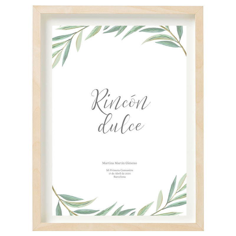 Decora el rincón dulce de tu fiesta con este bonito cartel con una elegantes hojas de Olivo con acabado acuarela.