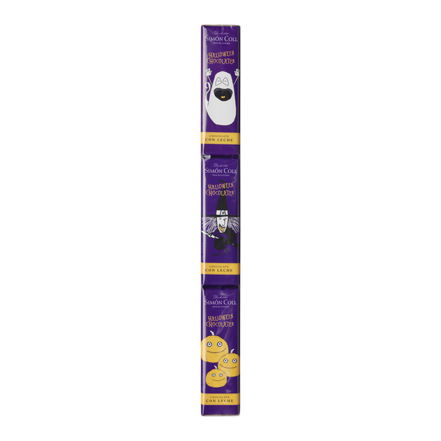 3 chocolatinas cada una de 18g con diseños de 3 divertidos personajes de halloween. Son ideales para regalar durante el trick or treat o como detalle para ambientar y darle un toque original a las cenas que se hacen para celebrar el día de los muertos .