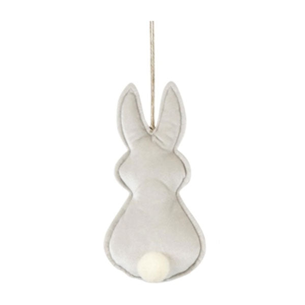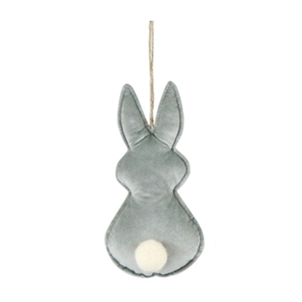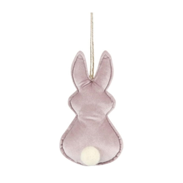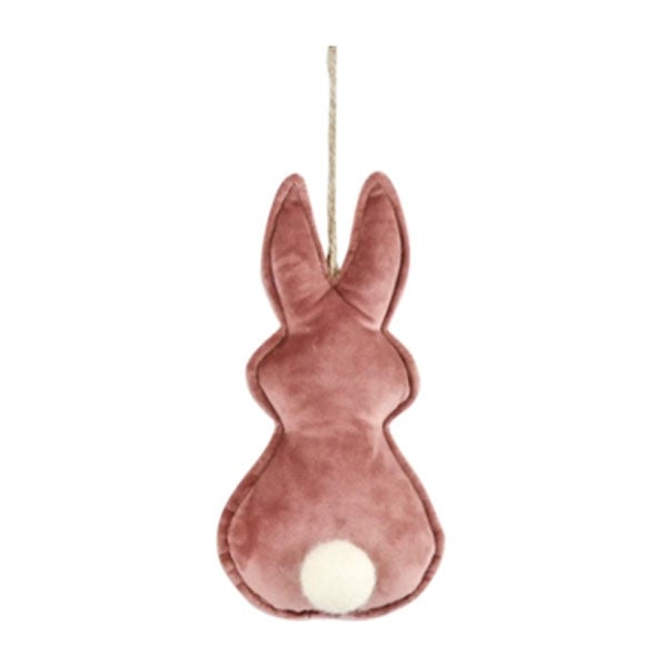 Conejo colgante en terciopelo suave y con una adorable pom pom a modo de colita, quedará perfecto para decorar el pomo del armario, el tirador de la puerta o para colgar en cualquier rincón y darle un toque festivo para los días de pascua.