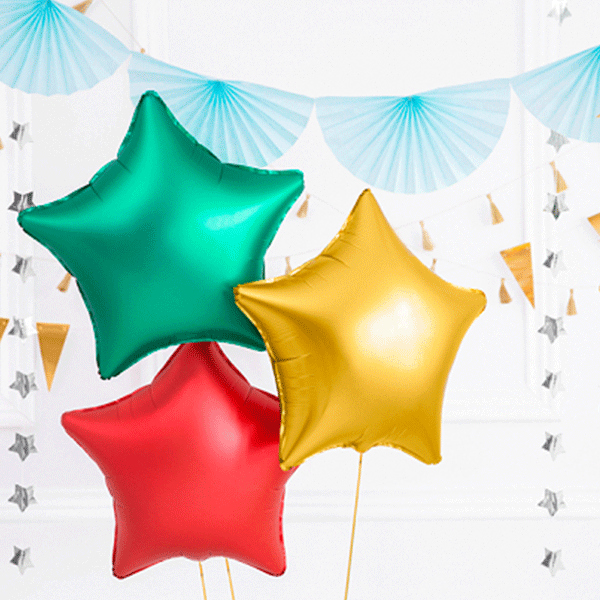 Medida: Forma de estrella de 48 cm. Puede hincharse con aire o con helio.
