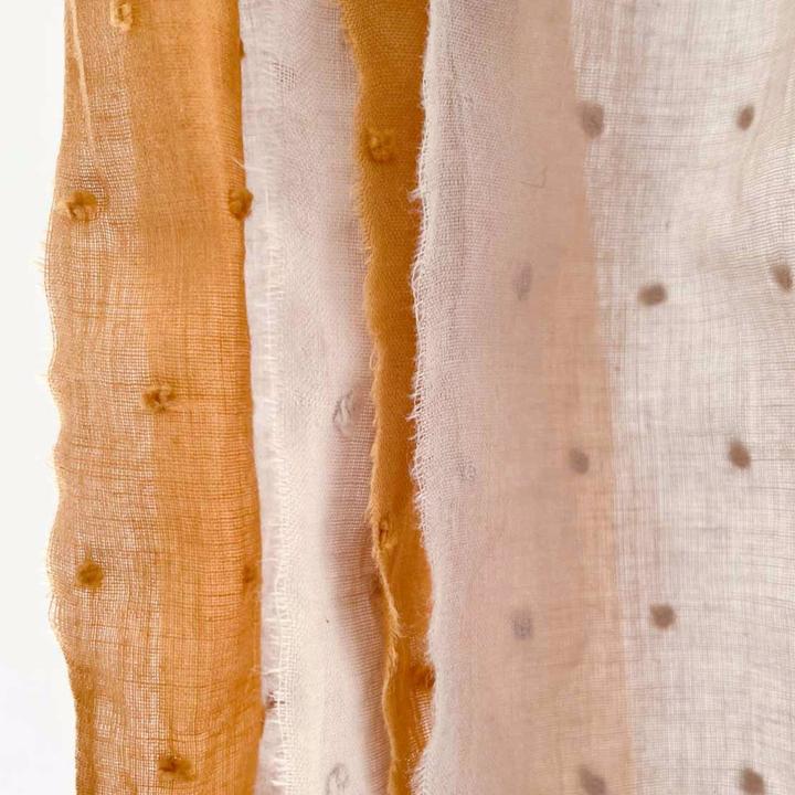 - Decoración retales de cintas de tela PLUMETI mostaza y piedra. Al ser un producto realizado a mano, el resultado final puede variar de la imagen.