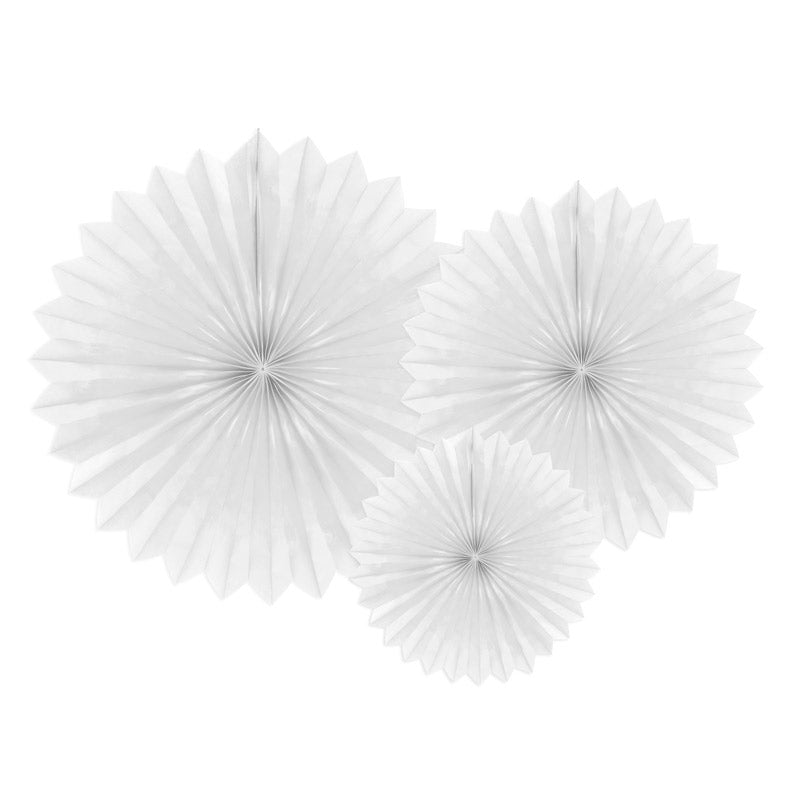 Este kit contiene 3 abanicos de diferentes tamaños en color blanco.