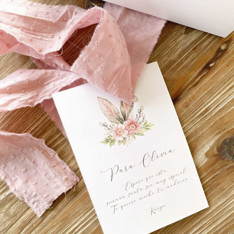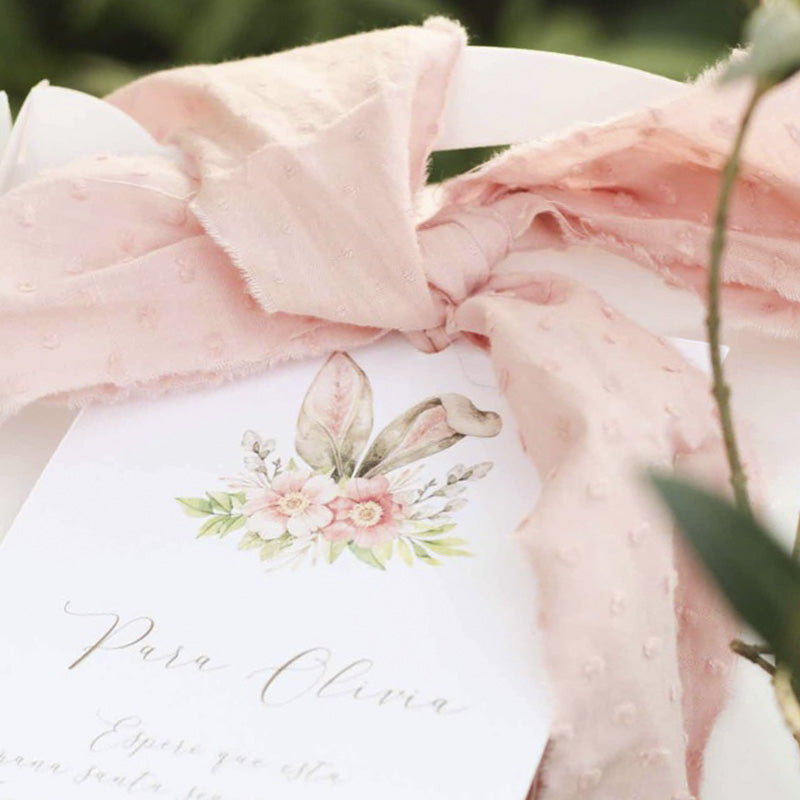 Tarjetón de Semana Santa conejito personalizada con un mensaje y nombre de tu ahijado.