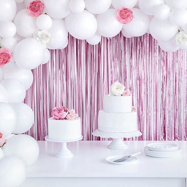 Con esta cortina de tiras en malva brillo tus fotos quedarán genial y dará mucho juego a la hora de la fiesta. Su toque glamuroso la hace ideal para bodas, fiestas de noche vieja o cualquier sarao divertido.