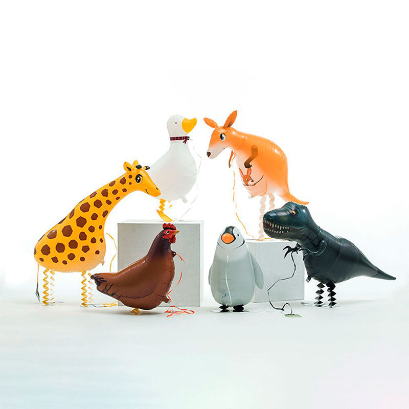 Los globos airwalker son globos de Foil con formas de animales que al hincharlos con helio se mantienen a nivel del suelo por sus pies pesados. Al estirar de ellos da la sensación que caminan, por la circulación de aire natural en un espacio interior.
