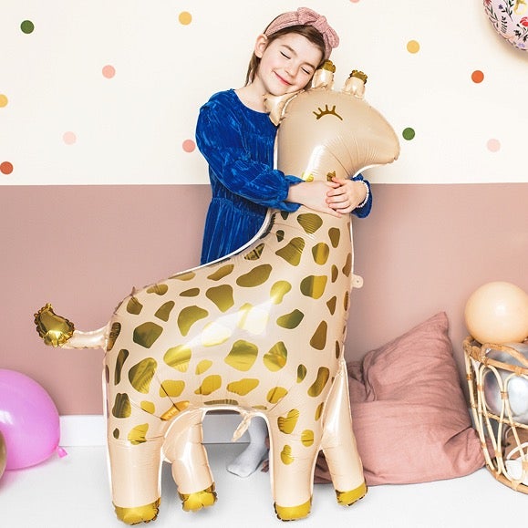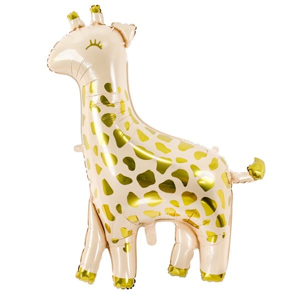 Globo en forma de jirafa con detalles en dorado brillante. Perfecto para las fiestas de los mas pequeños con temática de animales pero muy Chic.