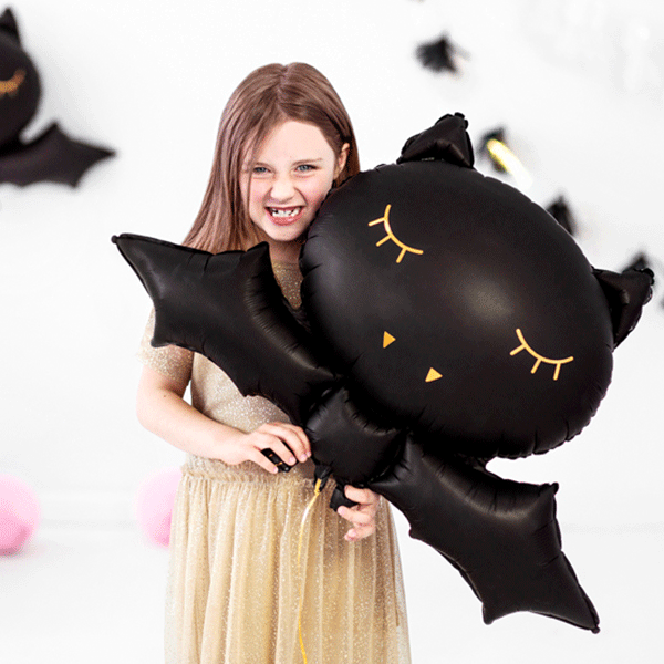 Terrorífico e ideal nos parece este globo de murciélago. Los detalles en dorado lo hacen muy elegante y quedará genial recibiendo a tus invitados o vigilando la mesa de las golosinas. ¡Nos encanta!