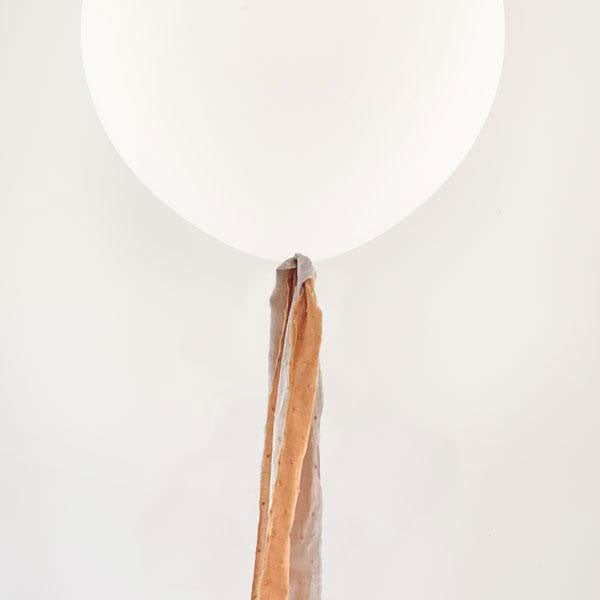 4. Ahora asegura la guirnalda a tu globo, atando un extremo de la cuerda de algodón con un nudo doble fuerte.