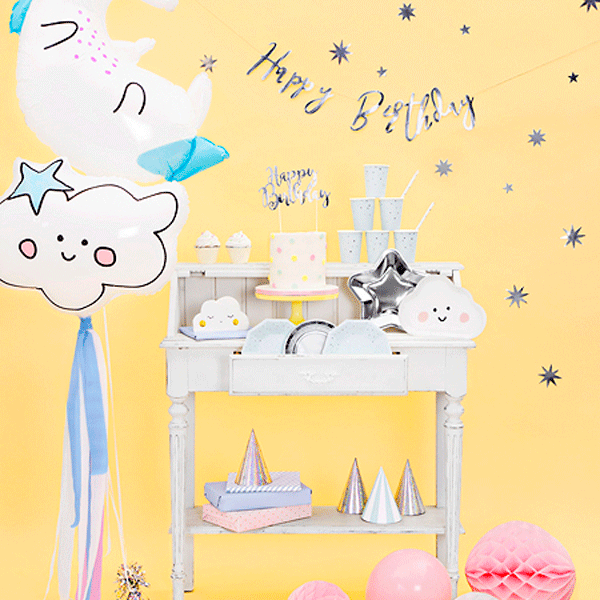 Este globo Mylar en forma de nube blanca con una simpática carita feliz. Es perfecto para dar la bienvenida a tus amigos en tu fiesta de verano. Puedes hincharlo con Helio o con aire. Puede flotar en la habitación, colgar del techo o pegado en una pared... el efecto es total!