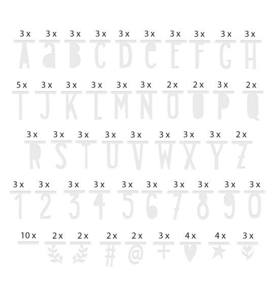 Incluye símbolos originales, letras y números, con un total de 147 caracteres. Incluye clips metálicos para que puedas unir las letras y formar tus frases cuantas veces quieras.