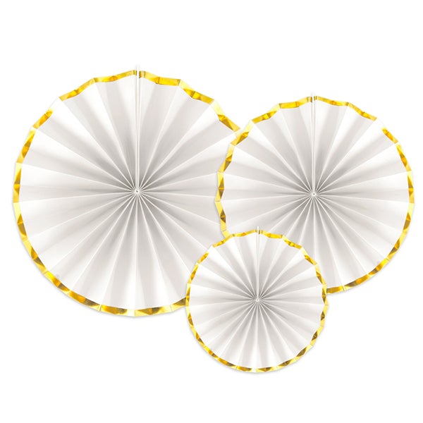 Kit abanicos cartón blanco borde dorado