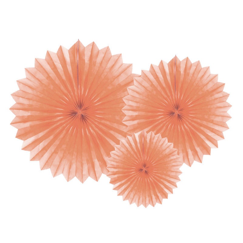 Este kit contiene 3 abanicos de diferentes tamaños en color melocotón.