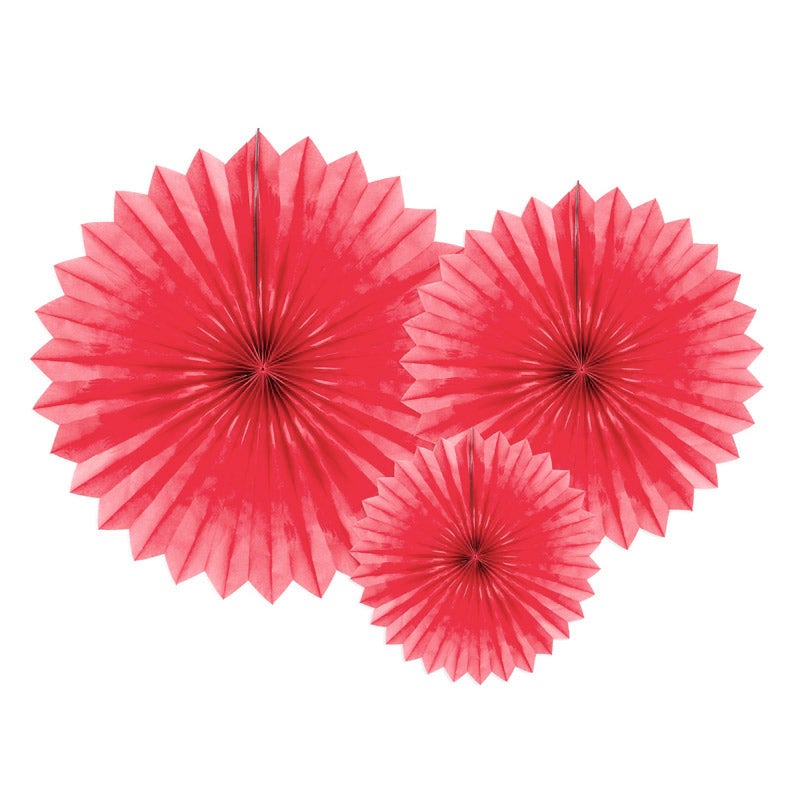 Este kit contiene 3 abanicos de diferentes tamaños en color rojo.