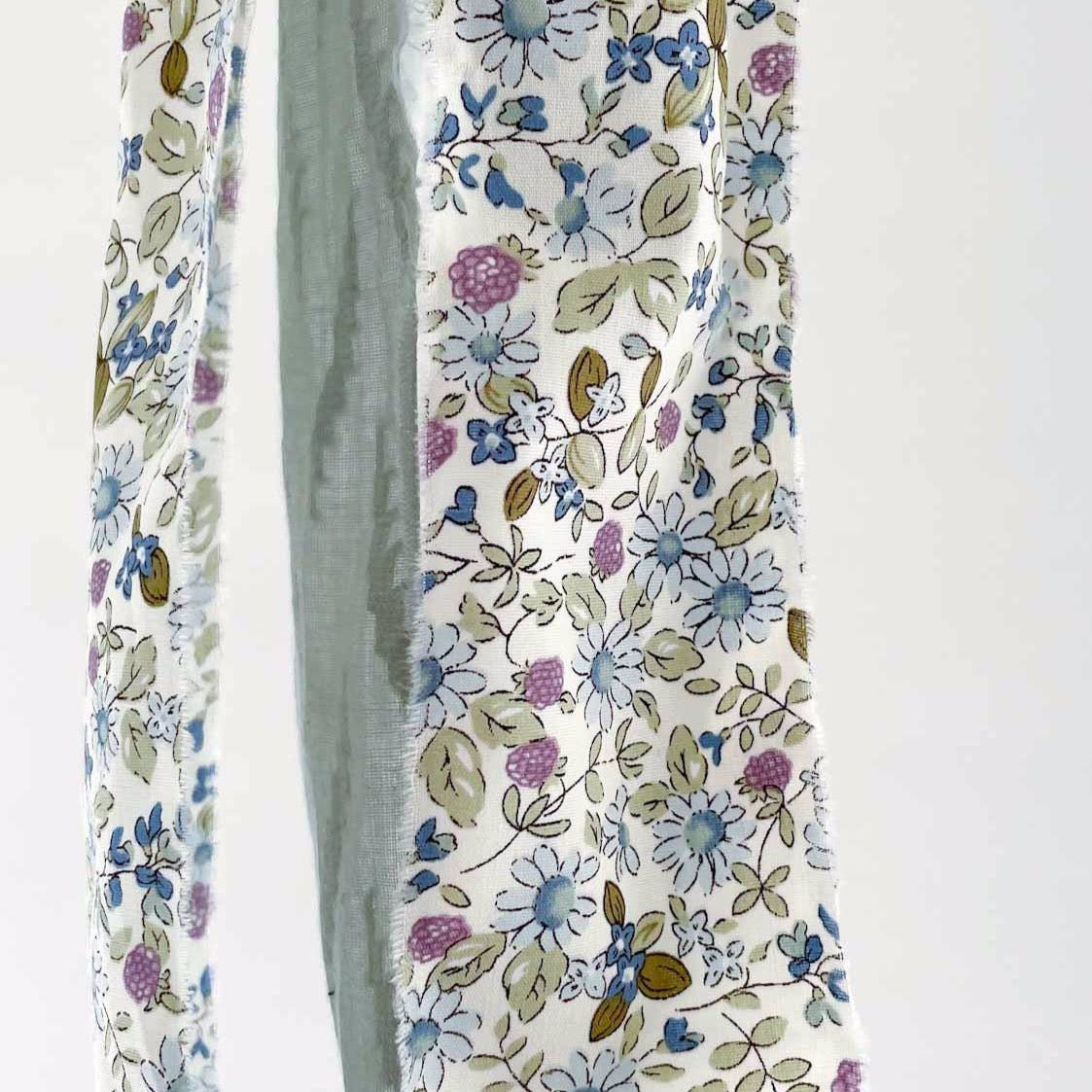 1 Decoración con retales de cintas de tela en Mint plumeti y Liberty mint. Las cintas de un globo L miden 50 cm. de largo y este kit contempla 4 cintas colgando. El tamaño y cantidad de las cintas está calculado para resistir el peso de un globo hinchado con helio