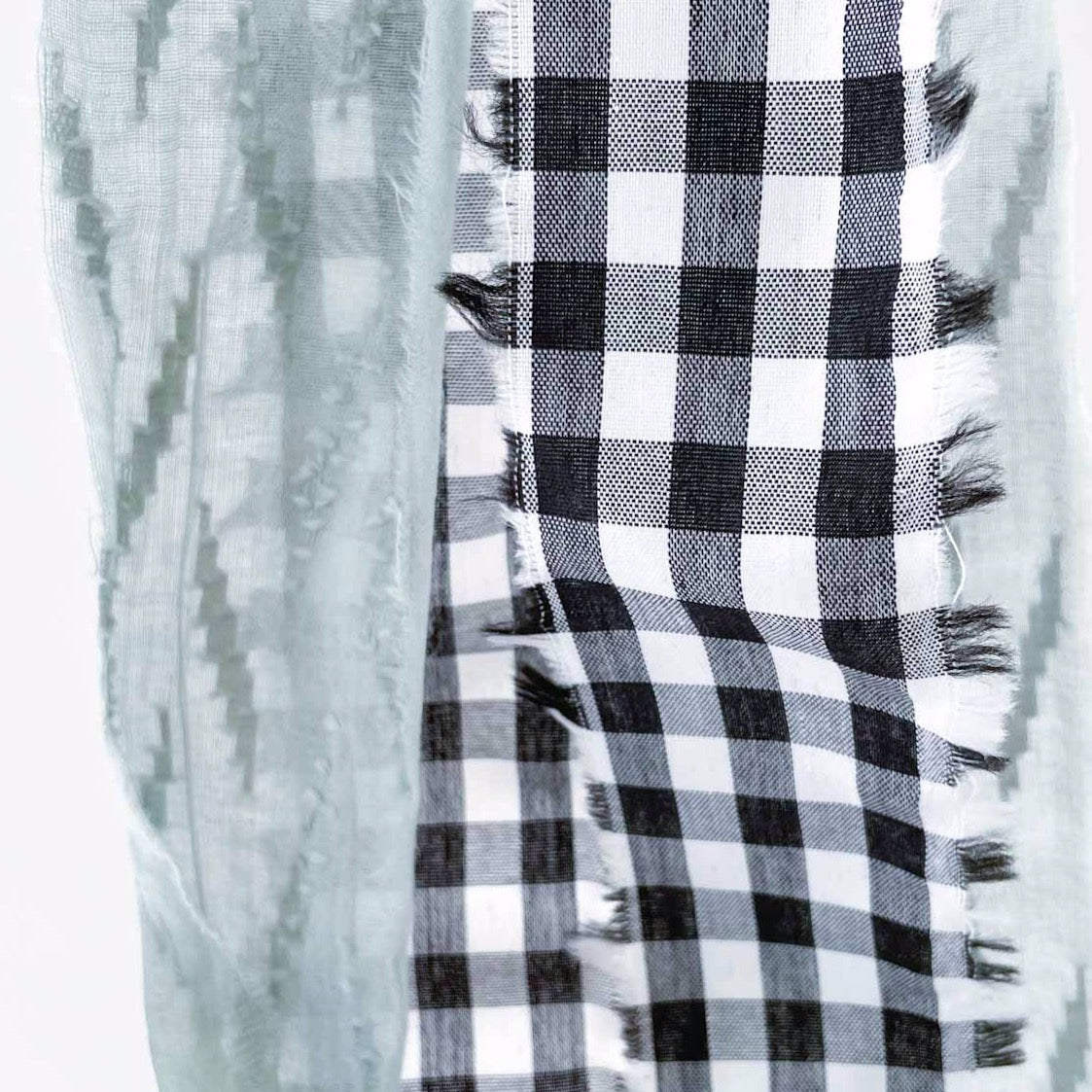 1 Decoración con retales de cintas de tela Vichy negro y mint plumeti. Las cintas de un globo L miden 50 cm. de largo y este kit contempla 4 cintas colgando. El tamaño y cantidad de las cintas está calculado para resistir el peso de un globo hinchado con helio