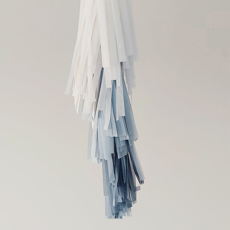 1 Guirnalda de flecos AZUL pastel en papel de seda cosida a mano a una cinta de tela para que puedas cogerla tu globo de forma fácil y rápida. Medidas 35 x 25 cm.