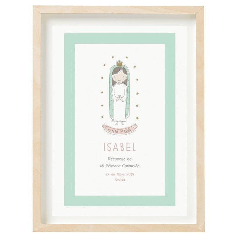 Una lámina personalizada para decorar un rincón especial en el bautizo o la comunión de tu hija/o y luego como recuerdo decorando su habitación.