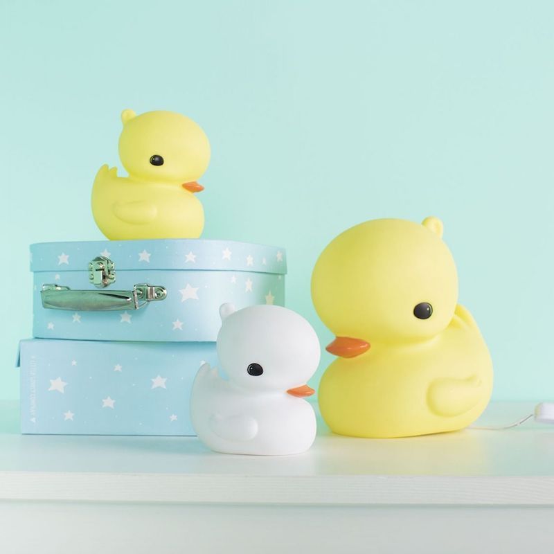 Lamparita quitamiedos LED con forma de patito amarillo. Quedará ideal apagada como objeto de decoración en la habitación de un niño, pero encendida da una suave luz de compañía.