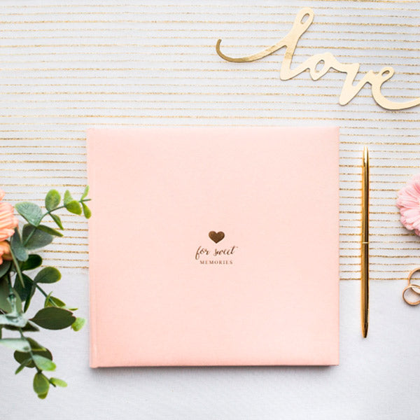 Características: Tapa dura laminada mate en color rosa con palabra sweet memories en dorado.