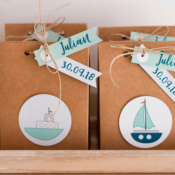 - Mini etiquetas para regalos con nombre y fecha