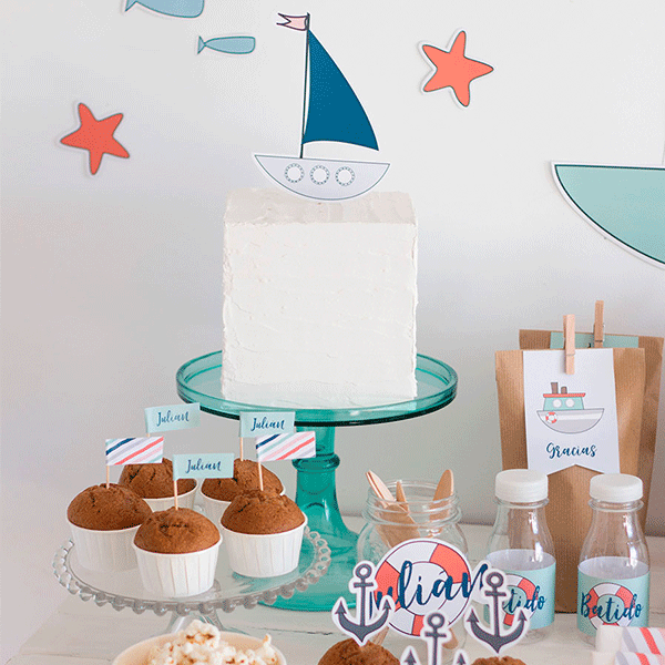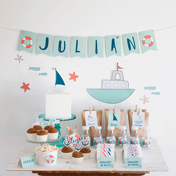 ¡Tierra a la vista! Este kit de fiesta para imprimir está cargadito de pequeños barquitos de juguete. Además encontrarás a juego manteles individuales y cajitas para palomitas en la shop.