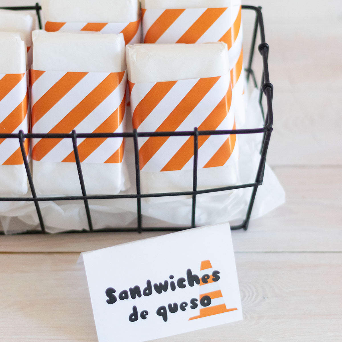 - Fajas de papel estampado para decorar sandwiches, servilleteros o tarros de chuches (2 modelos)