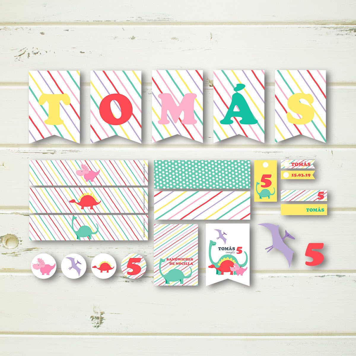 ¡¡RROOOAARR!! Llena tu fiesta de los dinosaurios más simpáticos con este imprimible para vestir toda tu mesa de lo más jurásica.