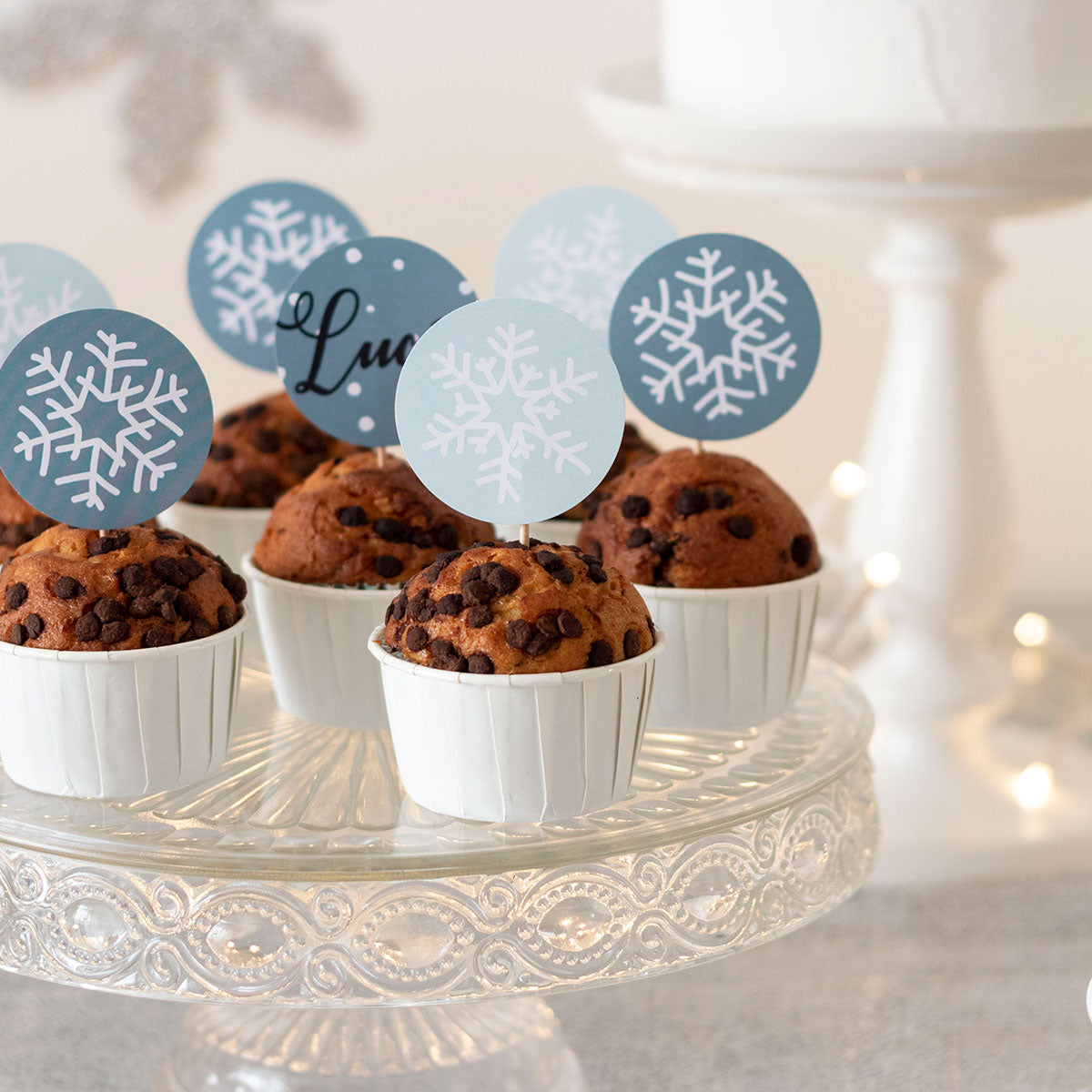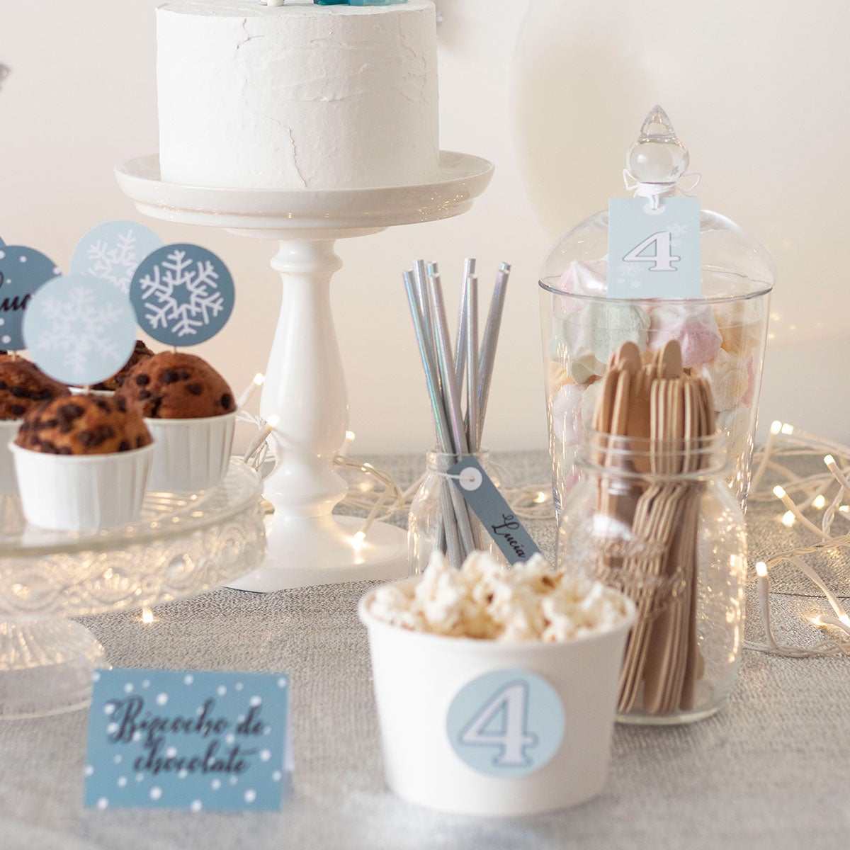 - Cake topper para la tarta con número y copos