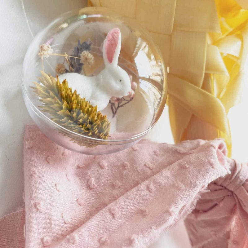 - Tesoro bolita de conejito o pollito con flor preservada y cinta terciopelo.