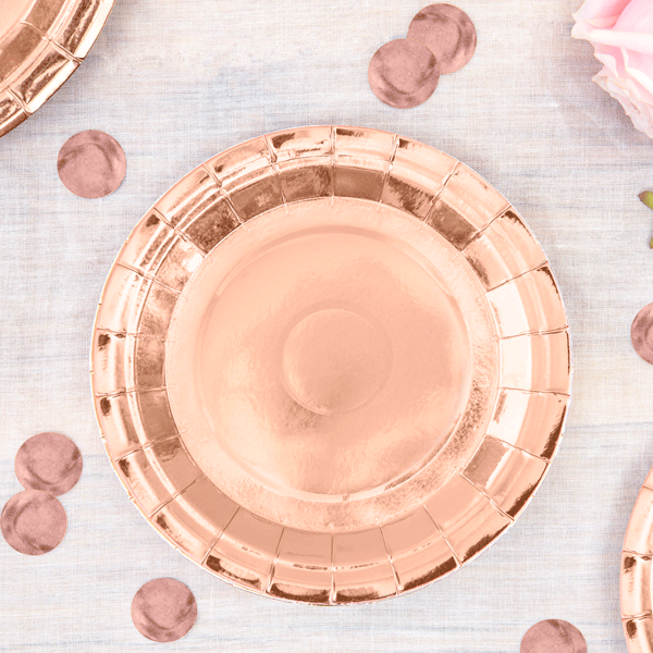 El Rose Gold está de moda y a nosotras no puede gustarnos más. Estos platos con brillo foil son ideales para fiestas adolescentes, puestas de largo, etc. ¡A todo el mundo les encantará!