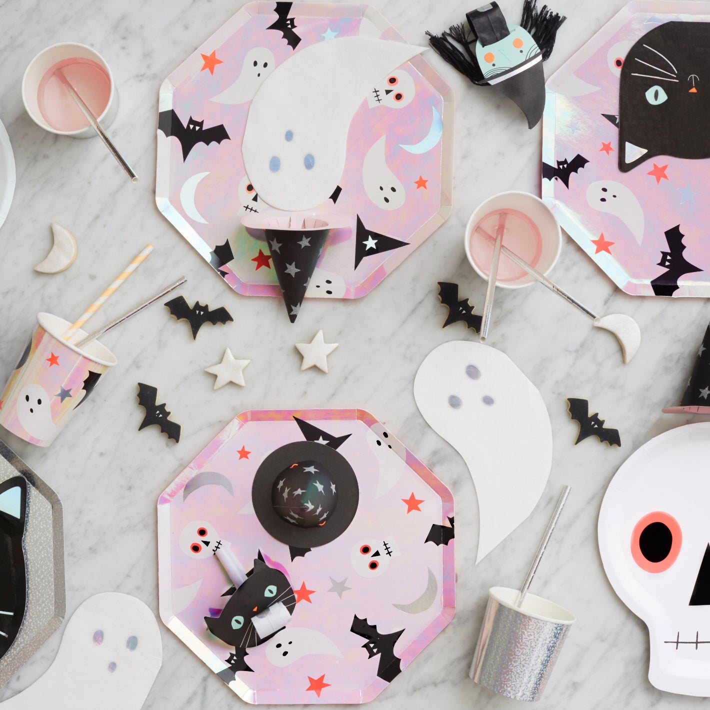 Estos platos en forma de fantasma iridiscente no pueden ser mas ideales.