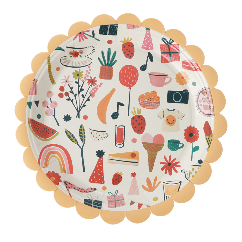 Helados, arcoíris, flores...¡ Una explosión de color!. Estos platos son todo lo que necesitas para hacer una fiesta divertida este verano. ¡Estos platos no pueden gustarnos más! Son ideales tanto para fiestas de niños y de adultos. Un éxito asegurado.