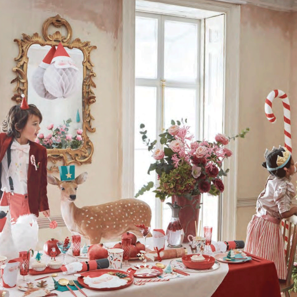 La nueva colección de Navidad de Meri Meri llega a la Fiesta de Olivia y es preciosa! Un Papá Noel ideal troquelado y con un elegante borde dorado.