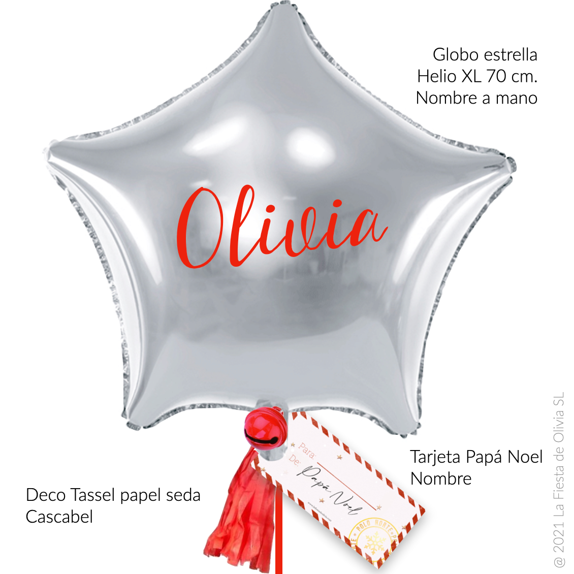 - Globo foil XL con forma de estrella hinchado con helio profesional a elegir color dorado o plata.