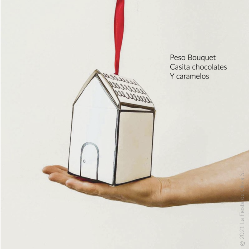 - Opcional: Puedes agregar un peso de casita de chocolates y bastones de caramelo.