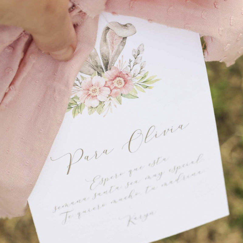 Tarjetón de Semana Santa conejito personalizada con un mensaje y nombre de tu ahijado.