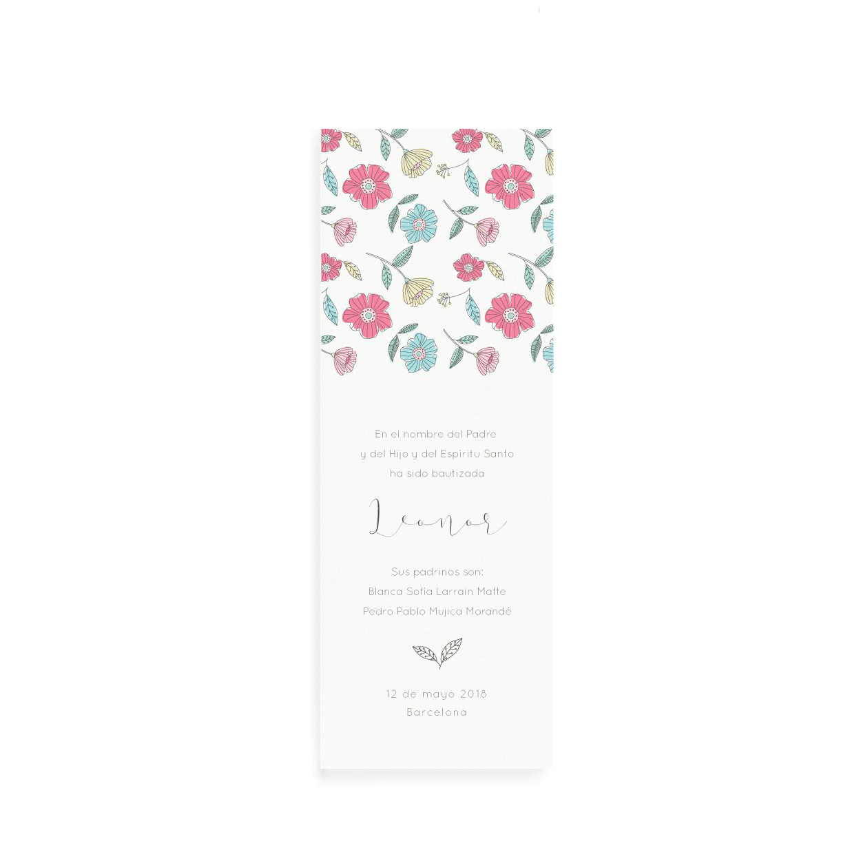 Invitación tamaño 7,8 x 12,5 cm.