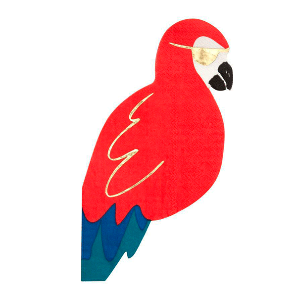 16 Servilletas con forma de loro pirata con parche en acabado brillo