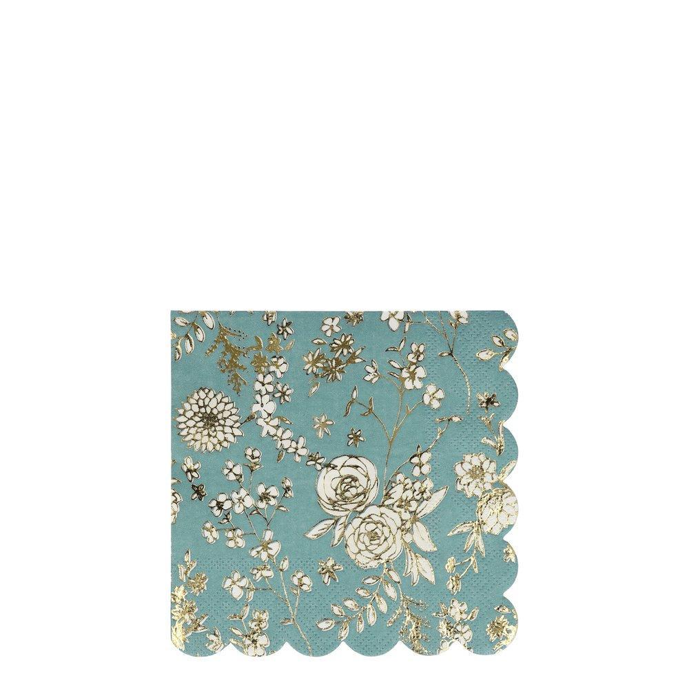 16 Servilletas mix de flores vintage en resaltes dorados y 4 modelos diferentes.