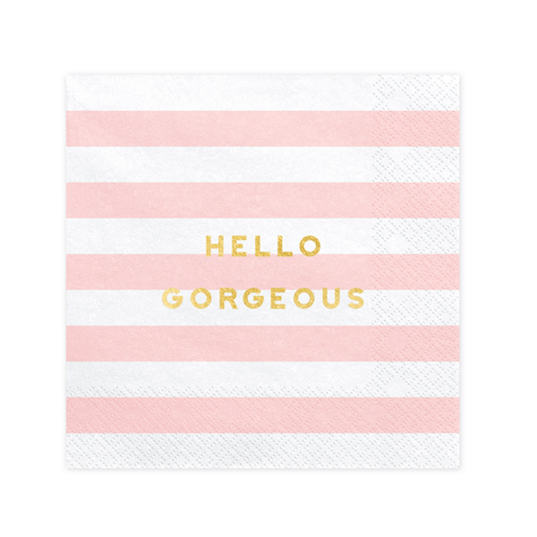Preciosas servilletas de papel en rayas rosa con mensaje en dorado foil " Always be positive"