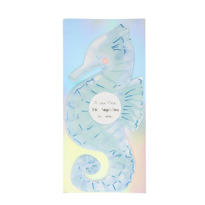 Servilletas de papel de 3 capas de alta calidad con forma de caballito de mar y detalles en Foil brillo y Neon.