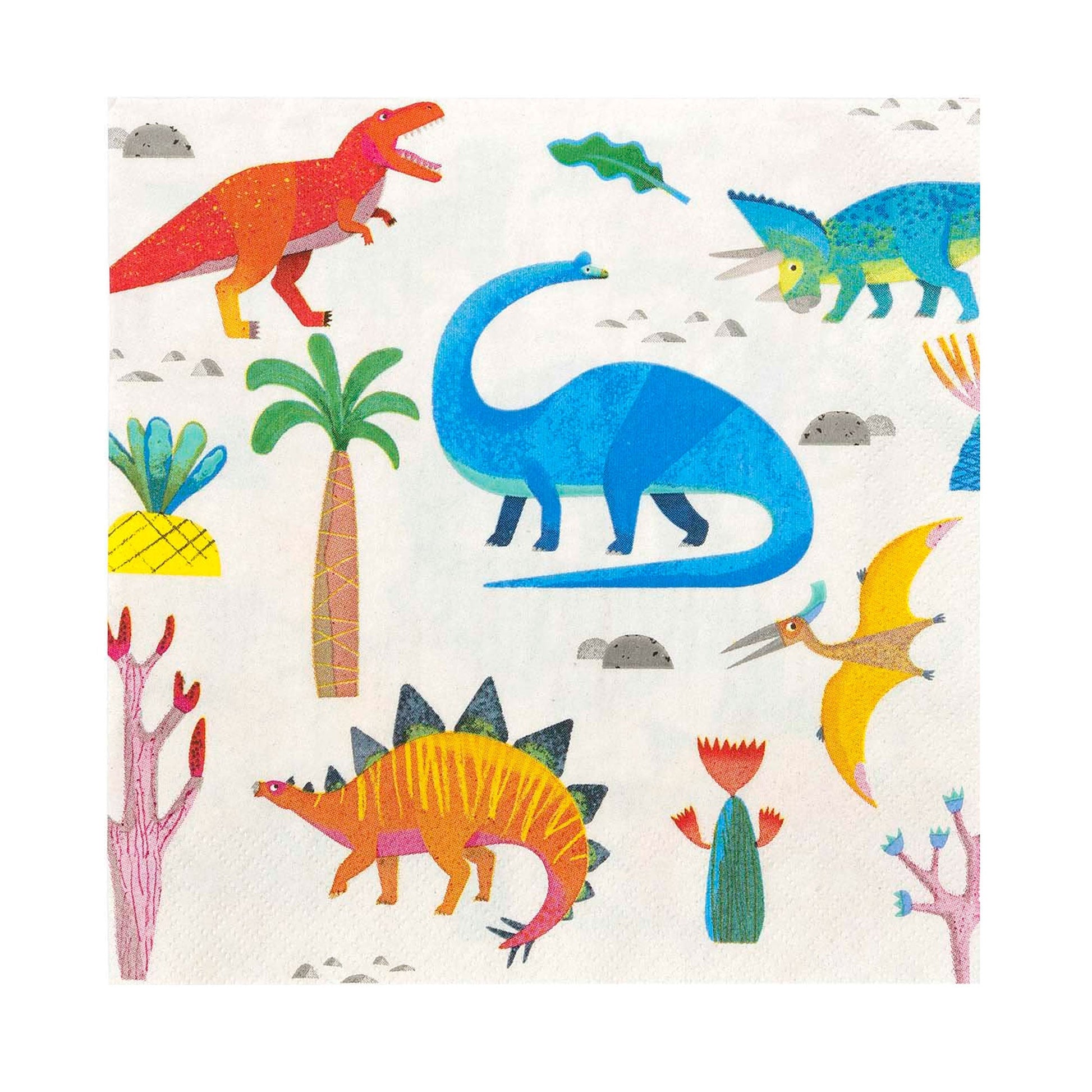 20 uds. Servilletas triple capa de excelente calidad con dinosaurios de varios colores.Tamaño Cocktail.