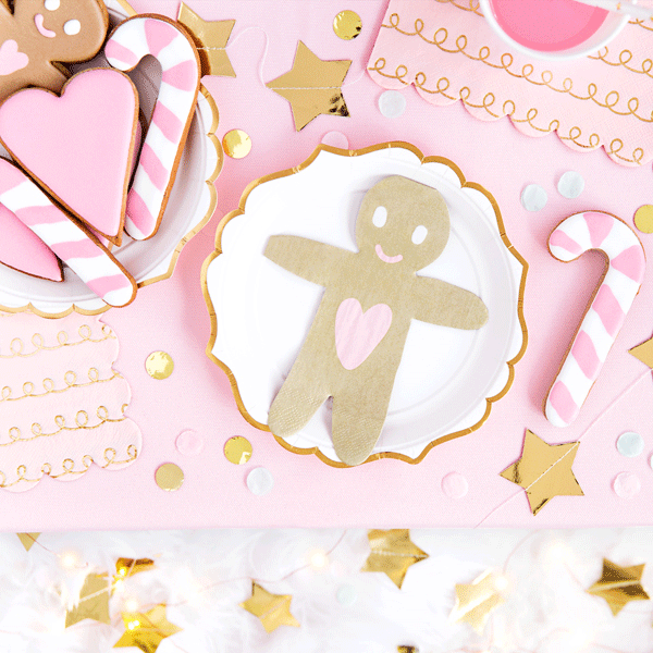 Servilletas triple capa en forma del adorable hombre de jengibre con un gran corazón rosa en el centro.
