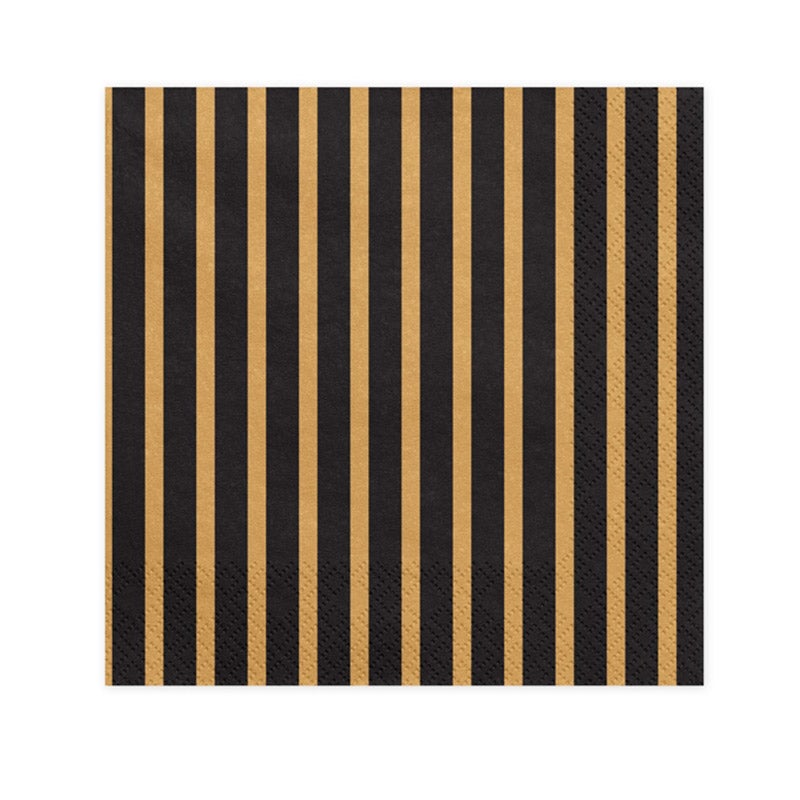 Servilletas rayas dorado y negro LUNCH / 20 uds.
